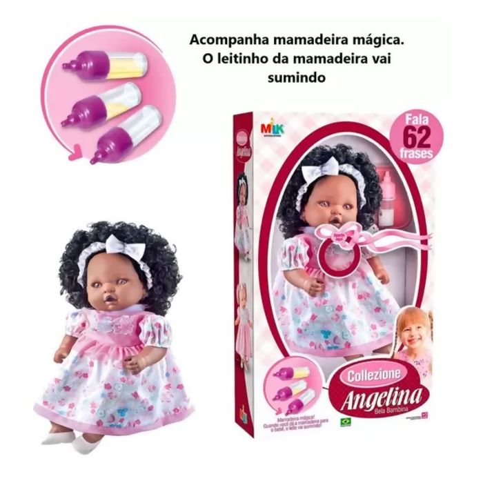 Dados técnicos BONECA COLLEZIONE ANGELINA NEGRA FALA 62 FRASES (MILK)