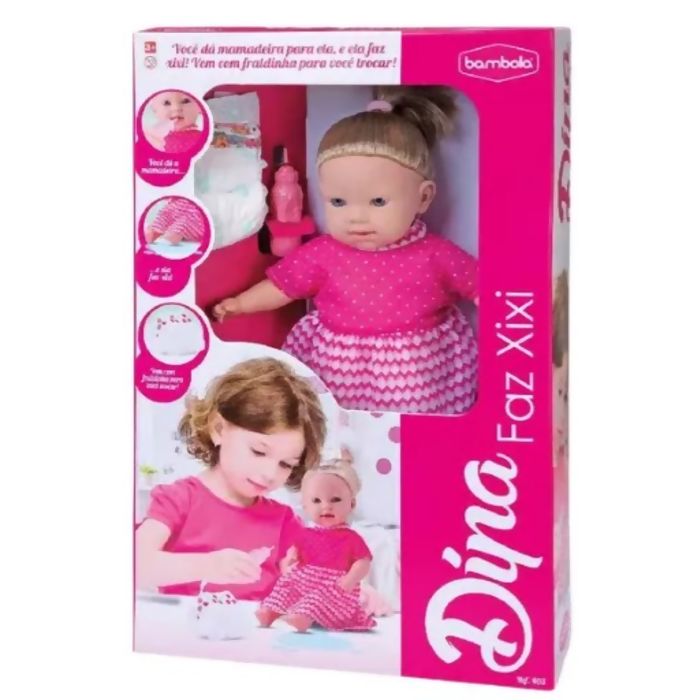 Descrição BONECA DINA FAZ XIXI LOIRA (BAMBOLA)