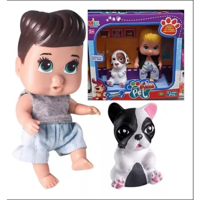 Descrição BONECO COLEÇÃO MY BEAUTIFULL PET FRIENDS MENINO E CACHORRO (MILK)