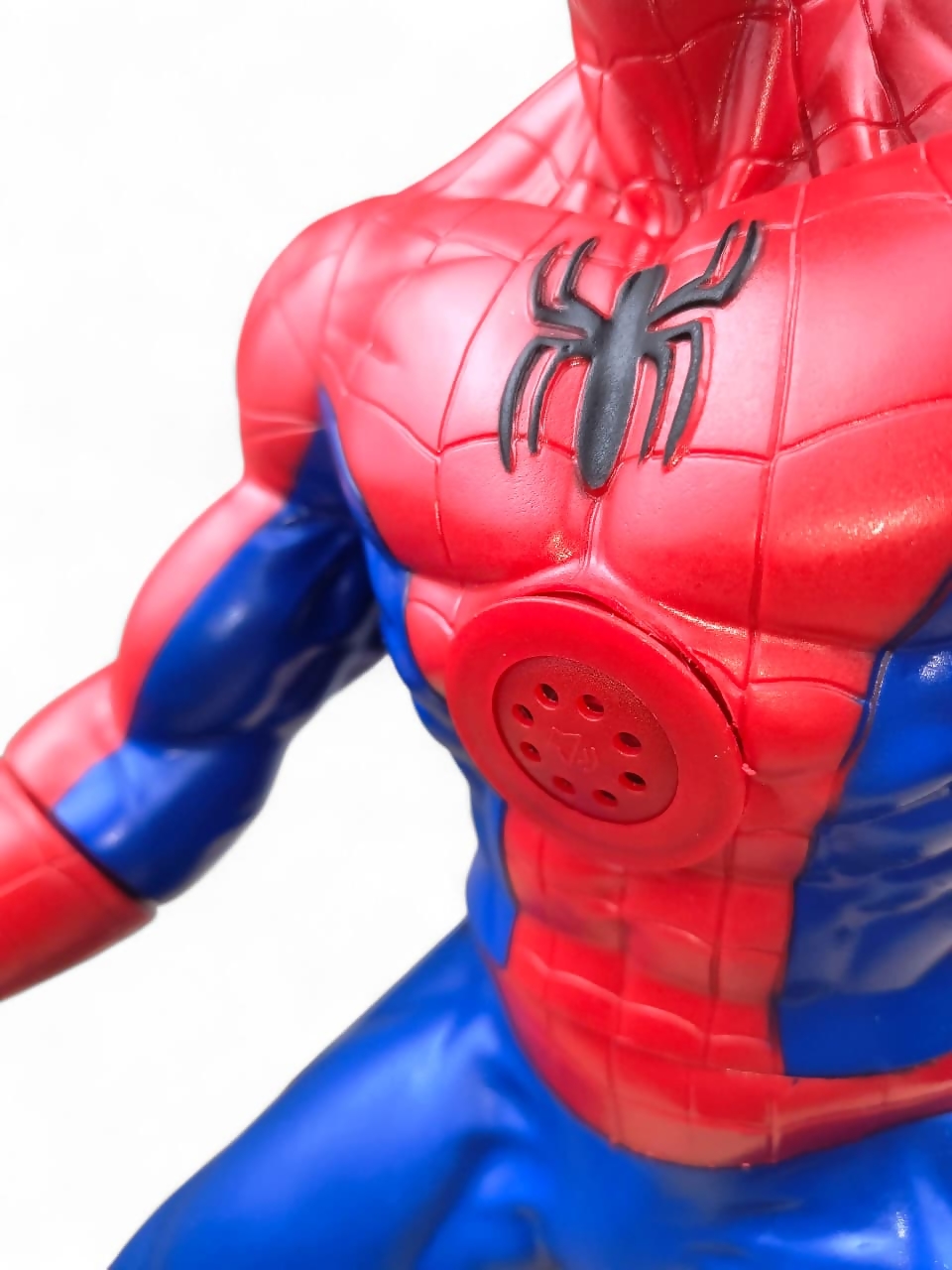 Com Som (Fala 6 Frases): A aventura fica completa! Ao apertar o dispositivo sonoro, o boneco emite 6 frases clássicas do Homem-Aranha, trazendo a personalidade do herói diretamente para a brincadeira e garantindo imersão total.