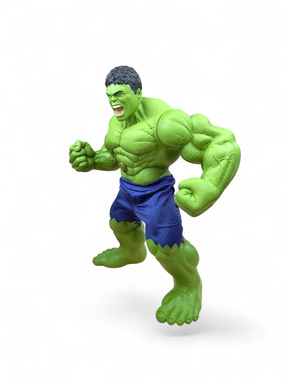 💪 Totalmente Articulado: Possui pontos de articulação nos braços, pernas e cabeça, permitindo que o Hulk faça diversas poses de ação e batalha. "Hulk Esmaga!"
