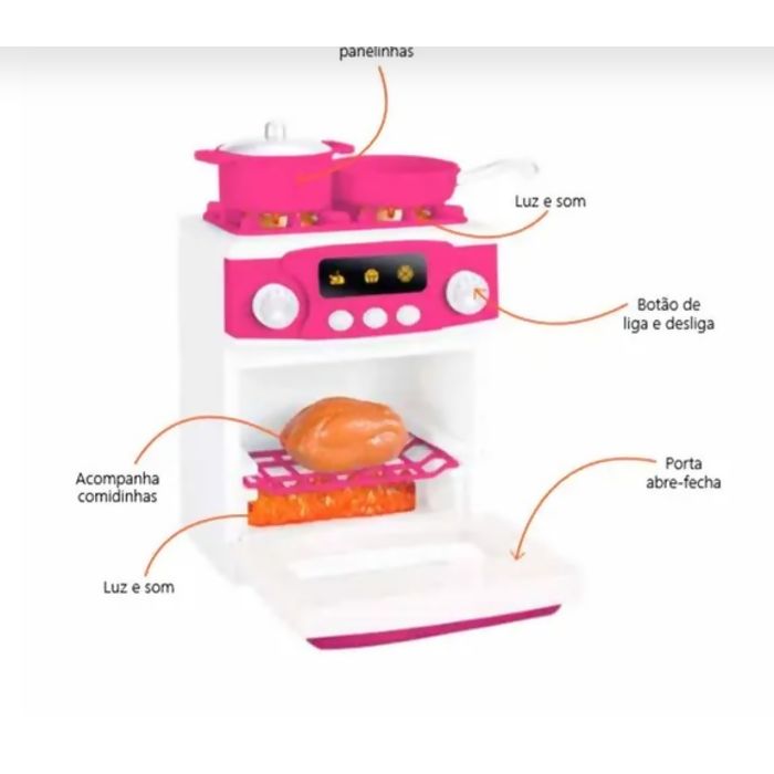 com fogao com forno eletrico a brincadeira fica ainda mais incrível vai transformar a brincadeira de faz-de-conta em uma experiência unica e divertida. Com sons realistas, movimento giratório e cores vibrantes, ele vai estimular a imaginação e a criatividade dos pequenos