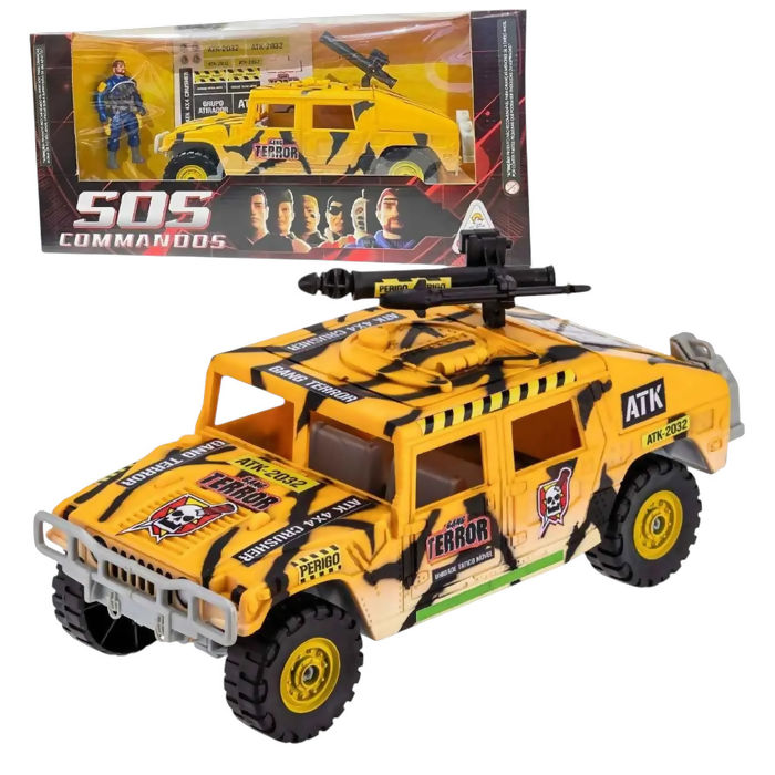 Brinquedo Carrinho SOS Commandos Gulliver - Atk 4x4 Crusher Boneco Acessórios Amarelo