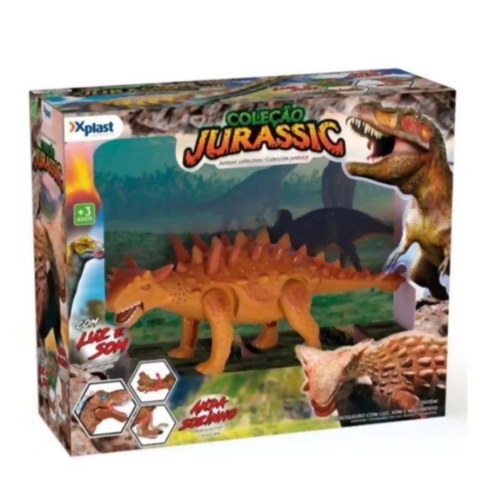 COLEÇÃO JURASSIC DINOSSAURO ANQUILOSSAURO COM LUZ E SOM, ELE ANDA SOZINHO COM CORES VIBRANTES E DETALHES REALISTA !