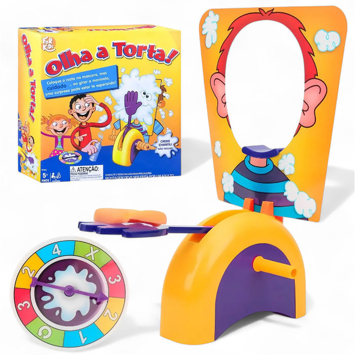 Com o Olha a Torta, a diversão é garantida. O jogo é simples: gire a roleta, insira o rosto no suporte e aguarde a sorte decidir quem levará uma "torta" de chantilly no rosto. Mas não se preocupe, a brincadeira é segura e foi projetada para risadas e não para bagunça. Este jogo de tabuleiro interativo é ideal para festas, noites de jogos em família ou apenas para uma tarde divertida com amigos.