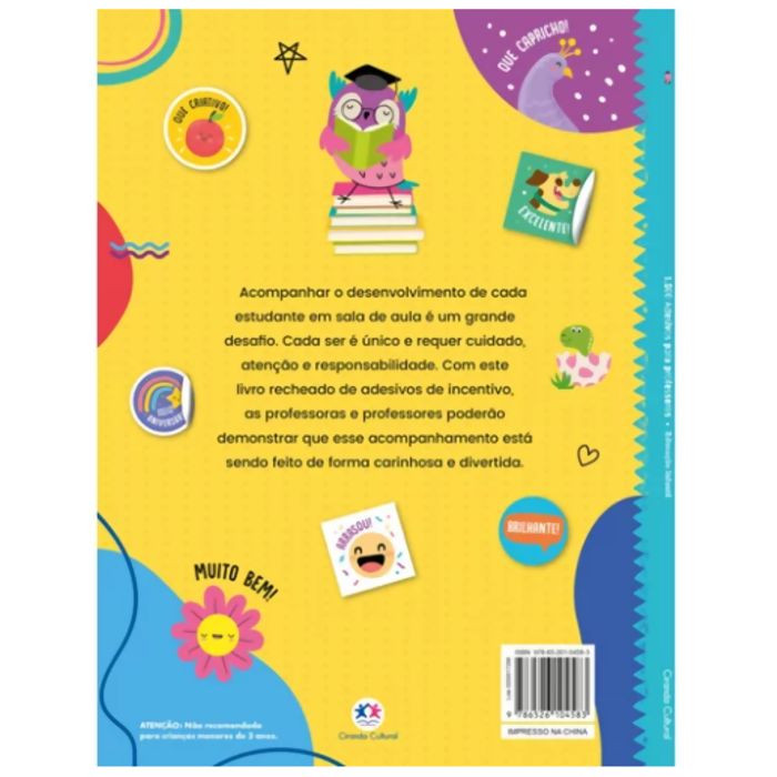 Sabemos que a cada dia temos um grande desafio em sala de aula e temos a missão de incentivar nossos alunos e desenvolver o hábito de estudo em cada um deles. Cada ser é único e requer cuidado, atenção e responsabilidade. Com este livro recheado de adesivos de incentivo, as professoras e professores poderão demonstrar que esse acompanhamento está sendo feito de forma carinhosa e divertida.