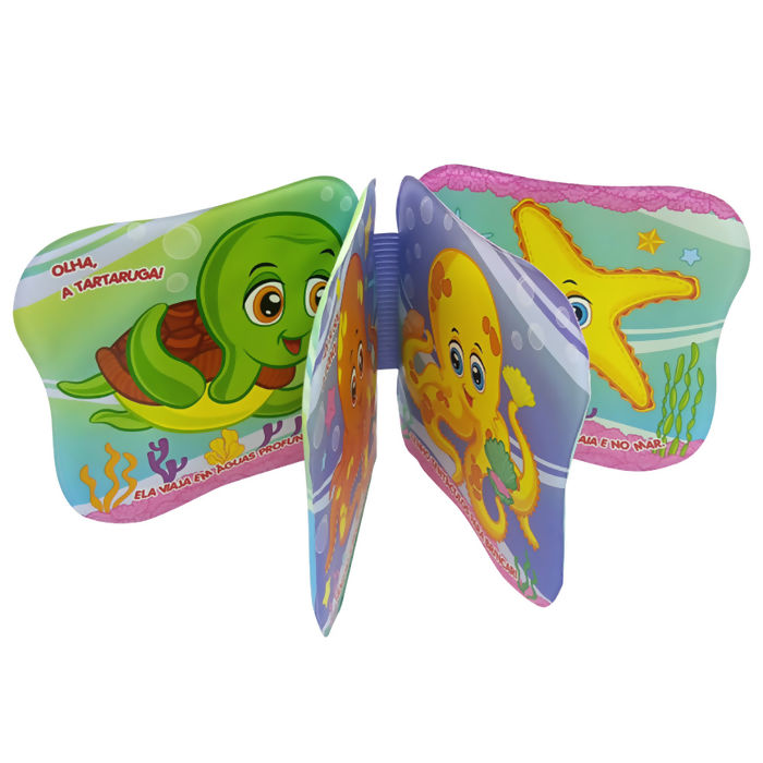 Transforme o banho do seu bebê mais alegre com este lindo livro de banho que acompanha 2 bichinhos de vinil. Ideal para o seu bebê.