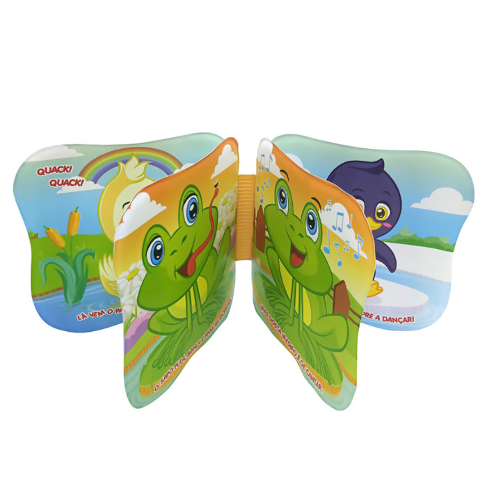 Transforme o banho do seu bebê mais alegre com este lindo livro de banho que acompanha 2 bichinhos de vinil. Ideal para o seu bebê.