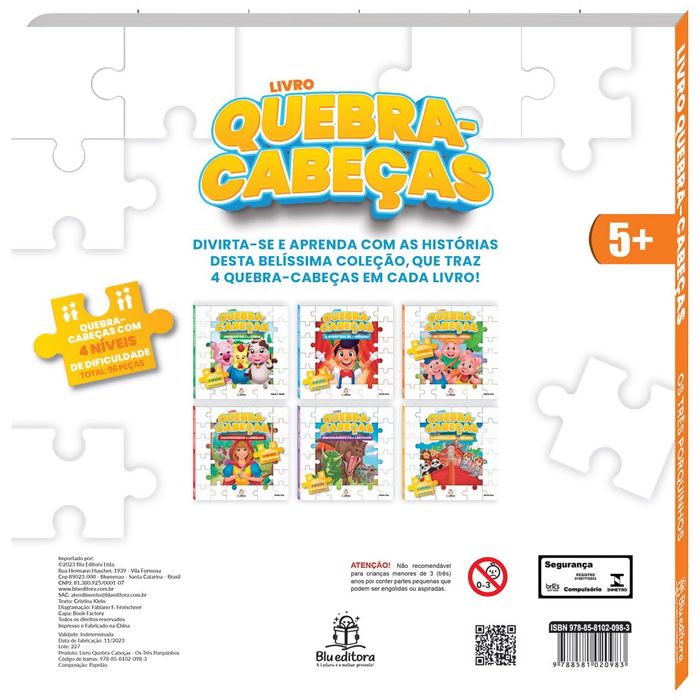 Dados técnicos LIVRO QUEBRA-CABEÇA GRANDE: Os Três Porquinhos- Blu Editora