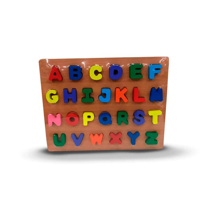Peças em madeira, estimulam a criança a relacionar, encaixando o DAS LETRAS corretA com o fundo da placa.